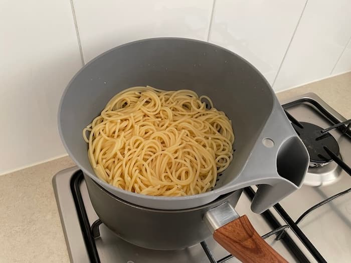 ソースはあっという間に出来上がるので、パスタを先にゆでておきましょう。