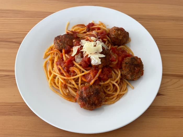ボリューム満点のミートボールスパゲティ。現在筆者が住んでいるオーストラリアでも人気のあるパスタレシピです。