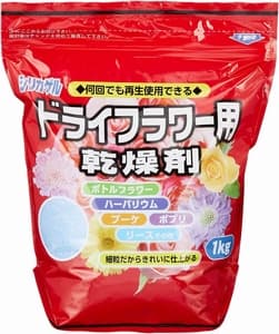 シリカゲル法でドライフラワーを作る場合、大量のシリカゲルが必要ですが、アマゾンではドライフラワー用のシリカゲルが売られています。