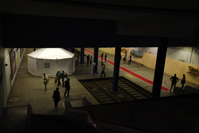 美術館以外の地下通路や倉庫、使っていない駅などでも展示することで、アートと街が溶け合う様子は社会派のドクメンタならではの光景である。