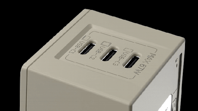 「Retro 67」は遊び心を全面に出した充電器。クラッシックPCの名機「初代マッキントッシュ128K」を彷彿とさせる外観、映画「マトリックス」のデジタル雨をオマージュしたモニターエフェクトにも懐かしさを覚える。3台同時接続でき、通常使用時はモニターに電力の出力状況を表示してくれる。