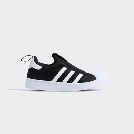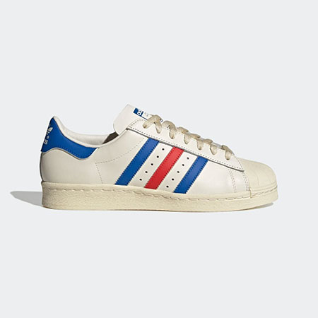 • 1970年代の発売から50年以上ものあいだ愛され続ける、アディダスを代表するシューズのひとつ。シェルトゥと呼ばれる貝殻のように見えるつま先や、サイドに入った三本線が特徴です。