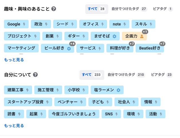 という三項目に分けてタグを付けることで、タグを辿って社内の知りたい情報や人とマッチングができる。タグには同僚から受け取ることができる「ピアタグ」という機能もあり、周りからの評価で得たタグは信頼度が増しそうだ。