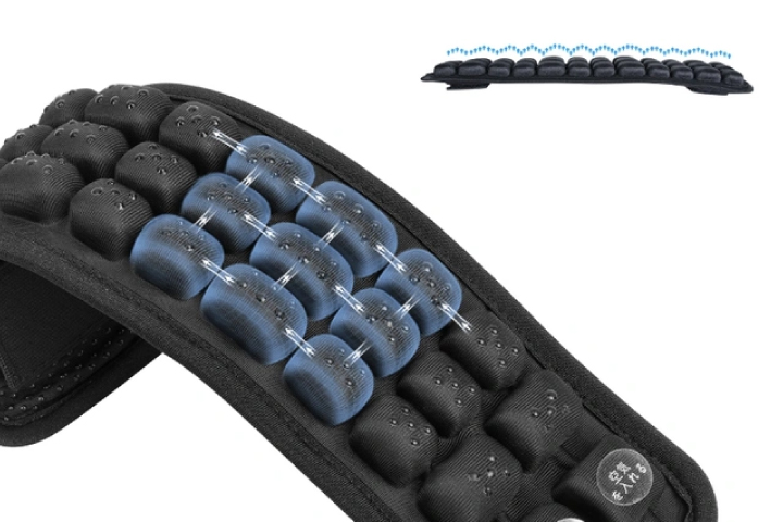 9個1組の3Dエアセル構造を採用。エアセルの内部で空気が均一に行き渡ることで体型に合わせて形状が変化し、荷重を分散させる。エアセルの間に溝があり、通気性がよく蒸れにくいそうだ。