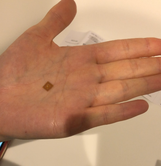 製品の寸法は7 × 7mmで、厚さは約0.12mm。