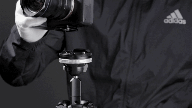 アルカスイス互換のクイックリリース機構を搭載。カメラの着脱も簡単だ。