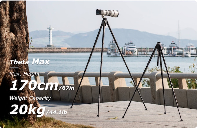 「Benro Theta」は、自動レベリング機能などを機能モジュールを追加できるカメラ三脚。