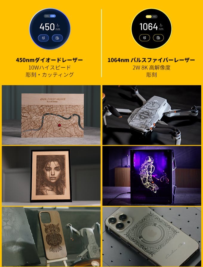 これらのレーザーをスワイプしてスマートに切り替えられ、ほぼ全ての材質に対応できる。