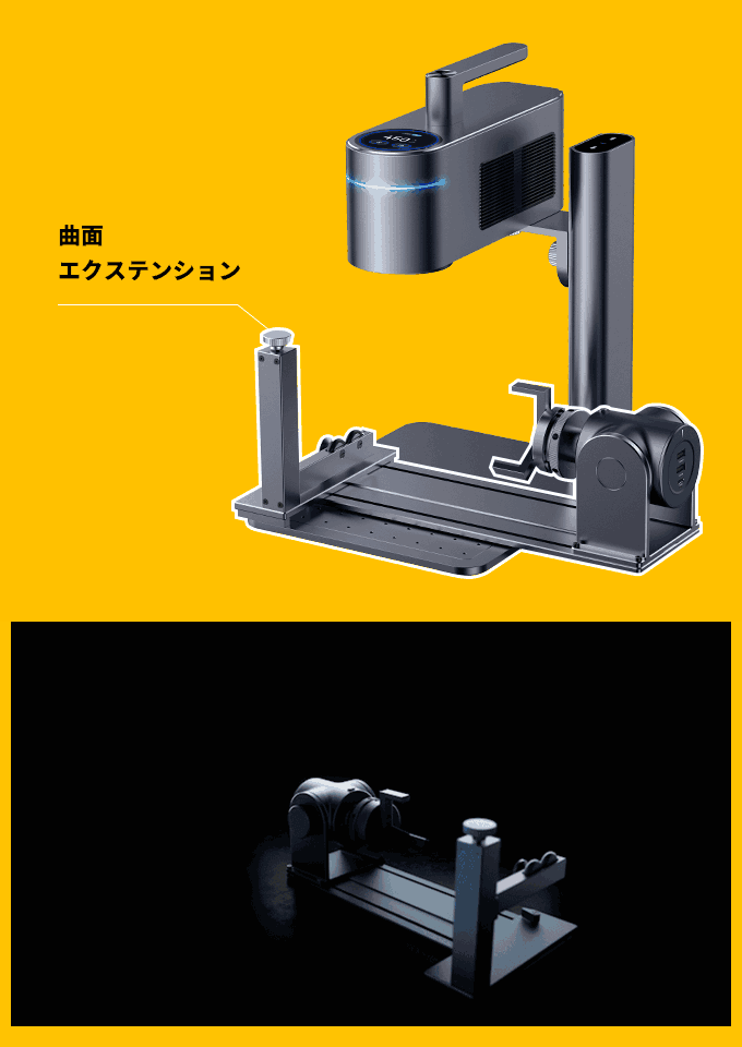 曲面エクステンションは、3つの調節可能なアタッチメントがついており、円柱素材や凸凹の形状のものでも簡単に回転しながら彫刻できる。
