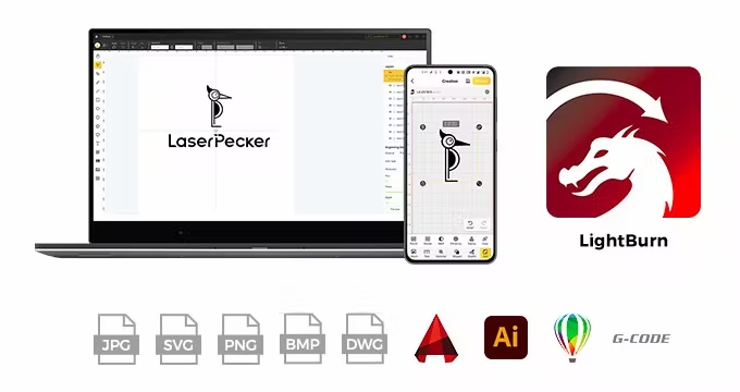 また、作画・編集から設定・制御まで行えるレーザー彫刻機の制御ソフト「LightBurn」にも対応している。動作可能OSはiOS9.0/Android 7.0/MacOS 10/Windows 10。