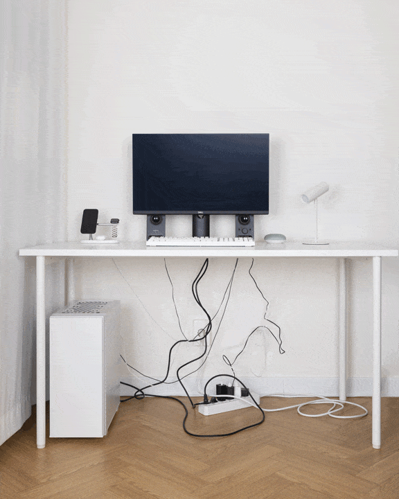 電源タップとケーブルは別々に収納できる。電源タップを置けるホルダーは、20°の傾斜角でプラグの抜き差しできる。ケーブルを収納するコンテナは、マグネット式を採用している。全面・側面・背面にホールがあり、好きな方向にケーブルを伸ばせる。