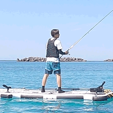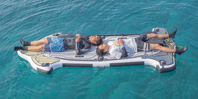 デッキは濡れても滑りにくいダブルレイヤーのEVAパッドで覆われていて、立ったまま操縦や釣りなど安定して行えそう。Iフレーム構造になった2気室のインフレータブルタイプで、推奨気圧が6ps。安定性が高い形状をしていて、転覆リスクが低いという。