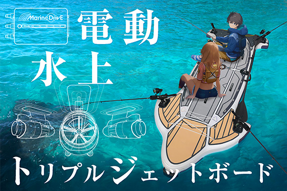 「MarineDrive」は、免許不要、大人2人で航行できる、SAPのようなボード状の水上EV。