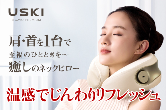「USKI RECAVO PREMIUM」は充電式のローラー付き温熱型ネックピロー。