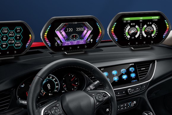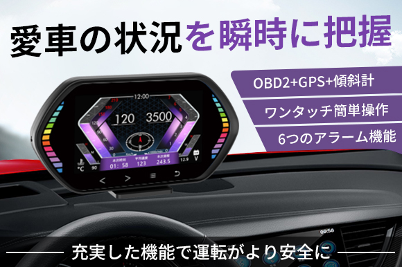 「KuoWei F12」はOBD2(車載式故障診断装置)、GPS、傾斜計、3つの機能を搭載した車用スマートメーター。取り付けると、エンジン負荷、走行距離や時間、瞬間燃料などがカラーディスプレイに表示され、目視で確認できるようになる。