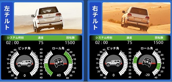また、6軸ジャイロスコープも搭載。走行中に上り坂、下り坂、右チルトなどの車の姿勢変化が把握できる。