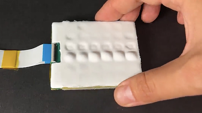「Flat Panel Haptics」は、電気浸透ポンプで流体を移動させることで、表面を膨らませたり萎ませたりできる形状変化ディスプレイだ。