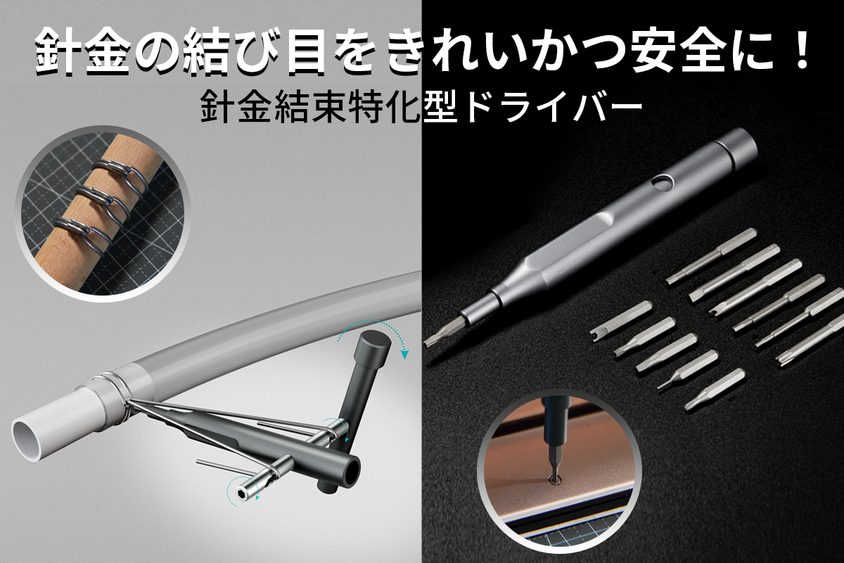「Syinno SE」は、結束線などの針金の結束に使えるドライバー。ペンチで針金を締めるよりもキレイに仕上げられるという。