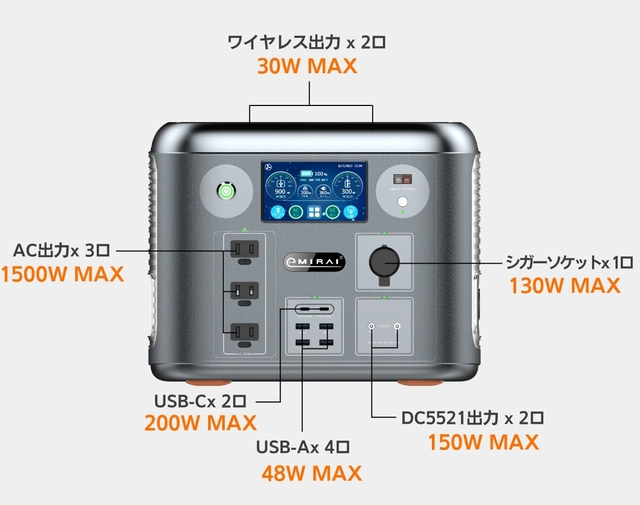 2023年新型未来系ポータブル電源が誕生 「EMR1500」の容量1,280Wh、出力1,500Wで、普通のコンセントと同じように使用できます。そして、使用者からの操作の便利...