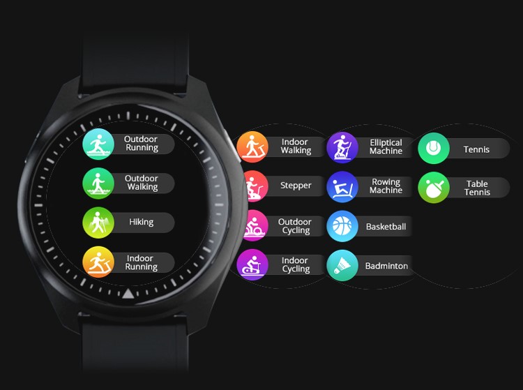 20種類のスポーツモードを搭載する他、通話や通知機能、タイマー機能や写真の確認などの機能を搭載している。
