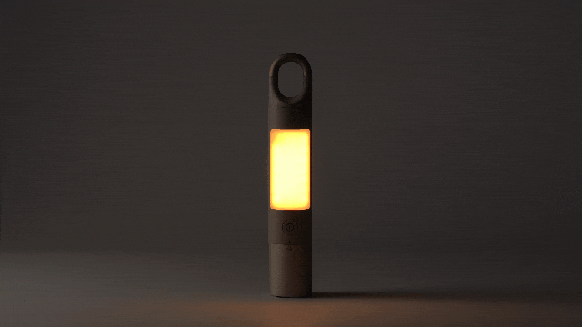 「DUO」は、燃料式ランタンの炎のゆらぎを再現し、懐中電灯や作業灯にもなるLEDランタン。持つ・置く・吊るす・貼ると便利に使える。