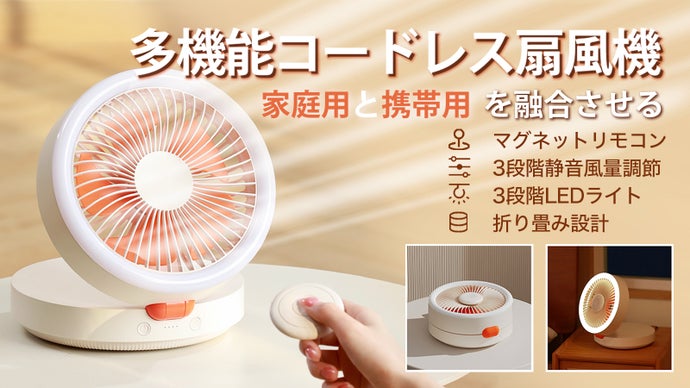 「M52多機能コードレス扇風機」は、LEDライトがついたコードレス扇風機。