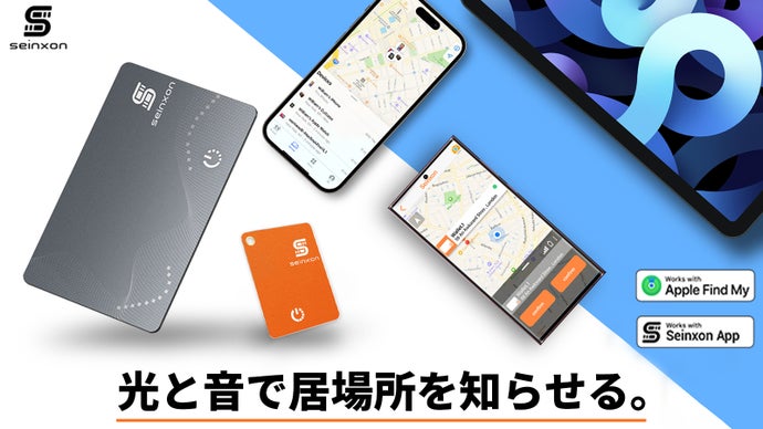 スマホとBluetoothで接続し、紛失防止に貢献する。Appleの「探す」に対応し、仮に置き引きなどにあっても、カードの周辺に他人のiPhoneなどがあればそのネットワークを通じておおよその位置がわかる。Androidにはこうした機能はないが、Seinxon製品が近くにあれば探すことは可能。独自のSeinxonネットワークを通じて、Androidにも対応する。