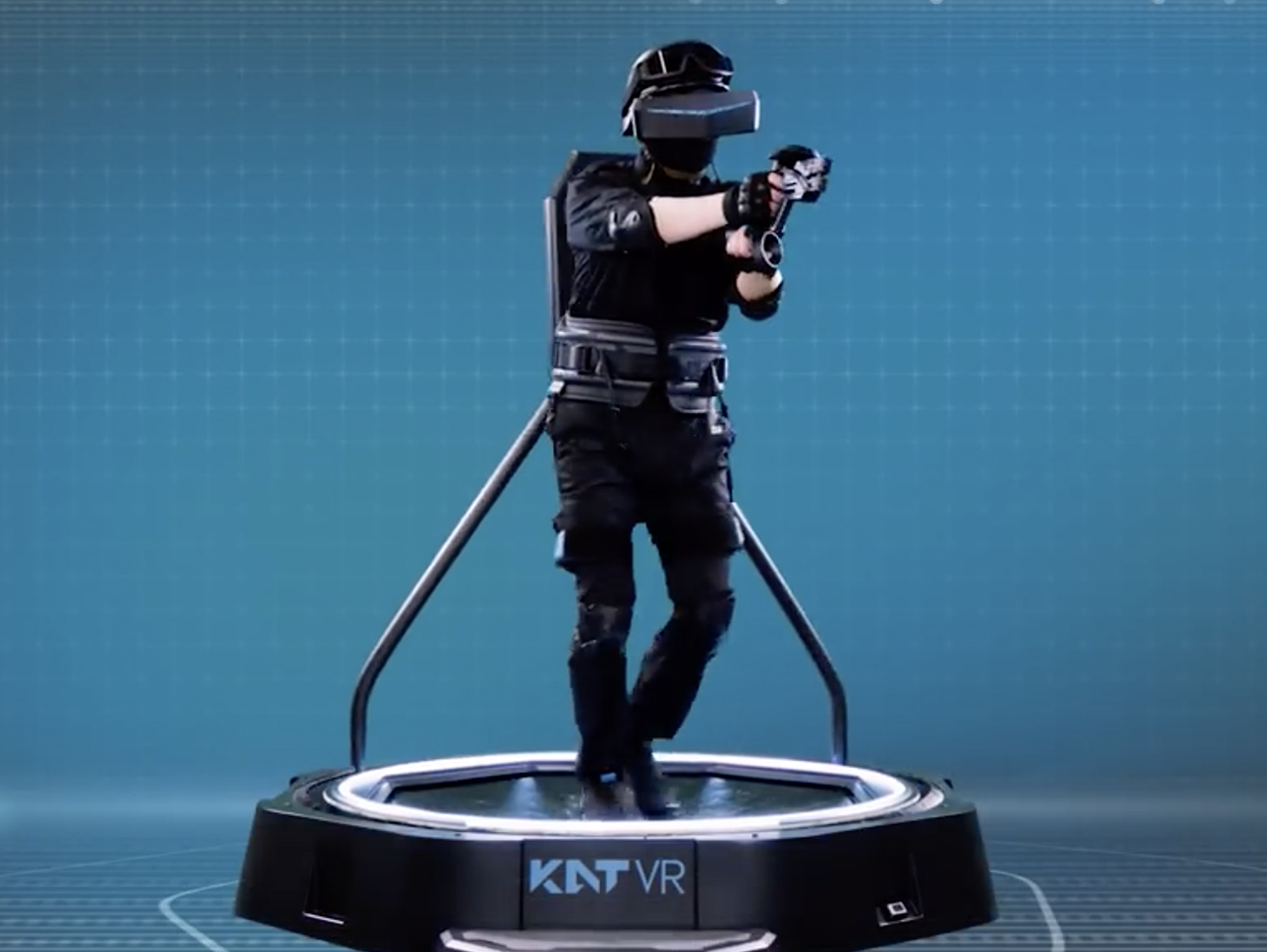「KAT WALK mini S」は、ルームランナーのような装置の上を実際に歩きながらVRコンテンツを体験できるデバイス。高さ約1.5メートル、必要面積1.37平方メートルで、一般家庭への導入も可能だ。