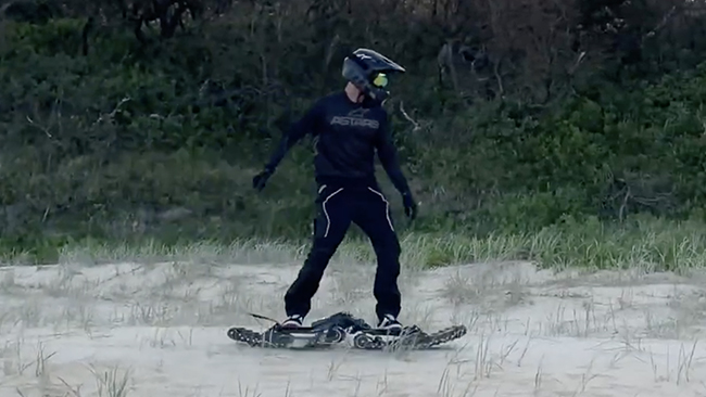 オーストラリアで開発された電動モビリティー「Ungoverned Vendetta」。走る姿は一見スケボーのようだが、実はタイヤではなくクローラーで走るプロダクトだ。