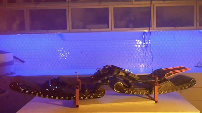 「Ungoverned Vendetta」は、2つのクローラーが縦に配置され、その上のボードに足を乗せて走る電動モビリティー。