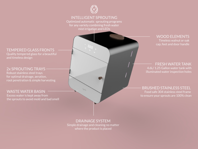 「AutoSprout」は、自宅で豆や野菜などの新芽(スプラウト)を収穫できる発芽用のプロダクト。