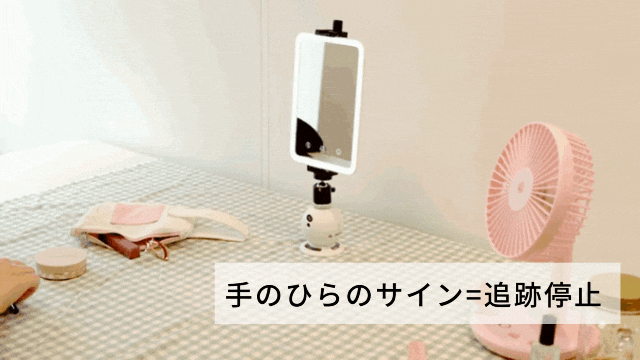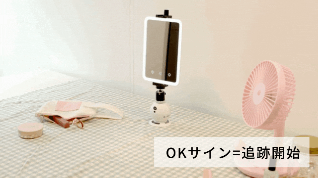 「OKサイン」や「手のひらのサイン」といったハンドジェスチャーを認識し、追跡の操作ができる。ジェスチャーは1.5m以内で認識する。