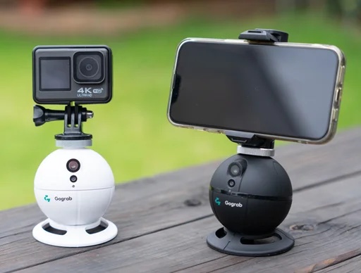 「Gograb Look at Me」は、スマホやアクションカメラを載せると、被写体を自動追跡するカメラスタンド。