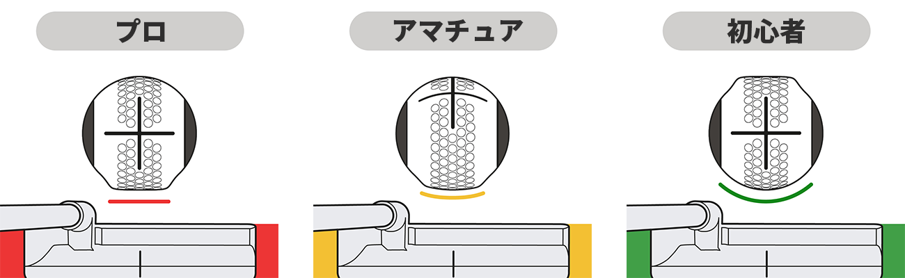 フェースにまっすぐ当たるとうまく転がるが、フェース角度が少しでも開いていると右側に、閉じていると左側に逸れていく。転がり方によってフェースの角度を判断できる