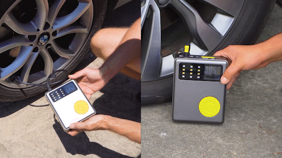 エアーポンプ機能は空気流量約26L/mで、使用対象に合わせた5つの空気入れモードと、3つのノズルでタイヤ・ボール・浮き輪などに使用可能。空気圧の目標値を4つ(BAR・PSI・KPA・kg/c㎡)から選択でき、設定された空気圧まで達すると自動的に停止する。