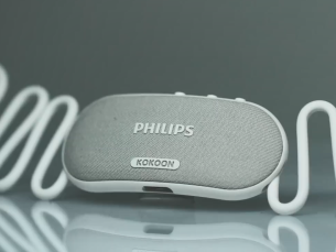 「Sleep Headphones」は、ヘルステック用品などを手掛けるフィリップス社とKokoon社が共同開発した睡眠用デバイス。イヤホンは、柔らかいシリコン素材で設計されており、AirPodsの1/3ほどの薄さ。何万人もの耳を研究して設計したそうで、付けながら寝転がったとしても、耳にフィットするという。