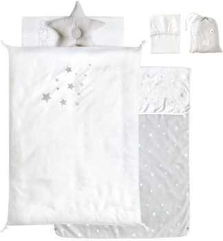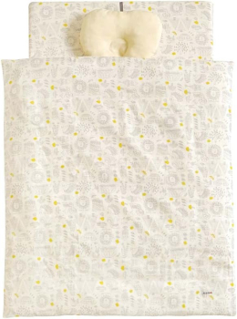 ダブルガーゼケットときんちゃくが付いていて、新生児から6歳頃まで使用できます。丸洗いが可能なウォシュロンふとんとクリーンくるマットもセットです。