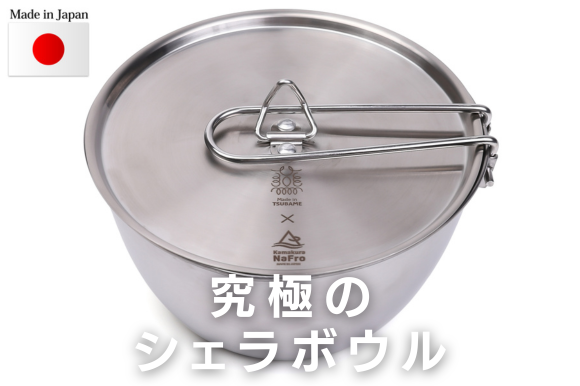 「究極のシェラボウル」は、混ぜる・煮る・炒める・炊く・食べるをこなせるステンレス製のシェラボウル。