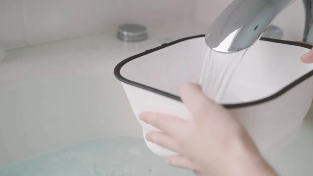 桶の縁にはゴム製のパーツがついており、浴槽内でも桶が滑りにくくなっている。