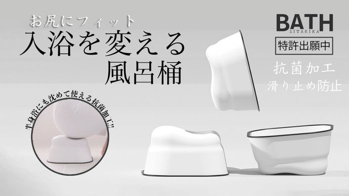 「座れる桶」は、お尻の形状に合わせて開発された、「座れて」「お湯を汲めて」「縦置きできる」風呂桶だ。