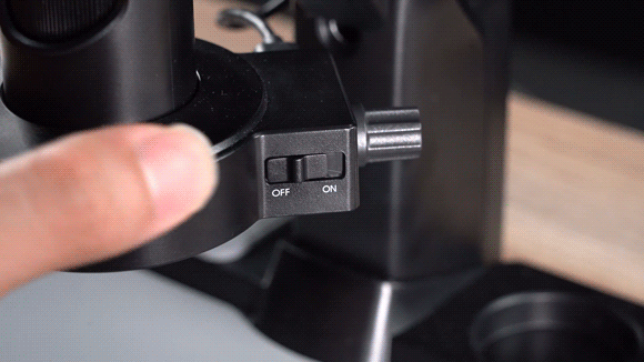 対物レンズの周りには、リング型LED無影灯を備えている。光源が不足していても、観察対象に影を生じさせず、明るく観察できる。