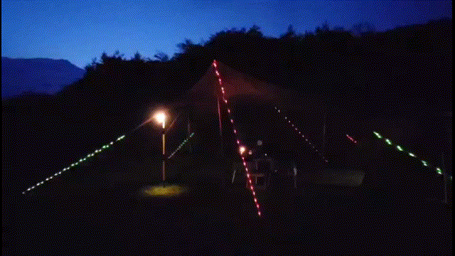 また、張り巡らされたロープは、イルミネーションのように光り、空間を演出する。ロープの色は、白・グリーン・オレンジの3種類あり、点灯モードは、通常・スロー・ファストの3つのモードがある。