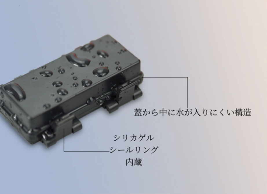 雨や夜露対策として、単3形乾電池を収納する部分は中に水が入りにくい構造になっている。