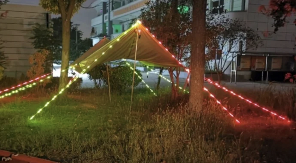 「LEDロープ」は、ロープ自体がピカピカと点滅し、夜間でも目立つ。それによって足をかけて転んでしまうことも防げるというわけ。