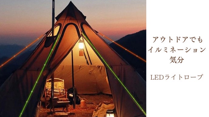 「LEDロープ」はアウトドアやキャンプで使える、電池式で光るロープ。