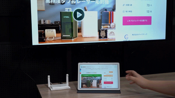 「ワイヤレスミラーキャスト」を使えば、スマホやタブレット、パソコンの映像を、モニターやテレビ、プロジェクターなどの大画面にワイヤレスで転送して、ミラーリングできる。