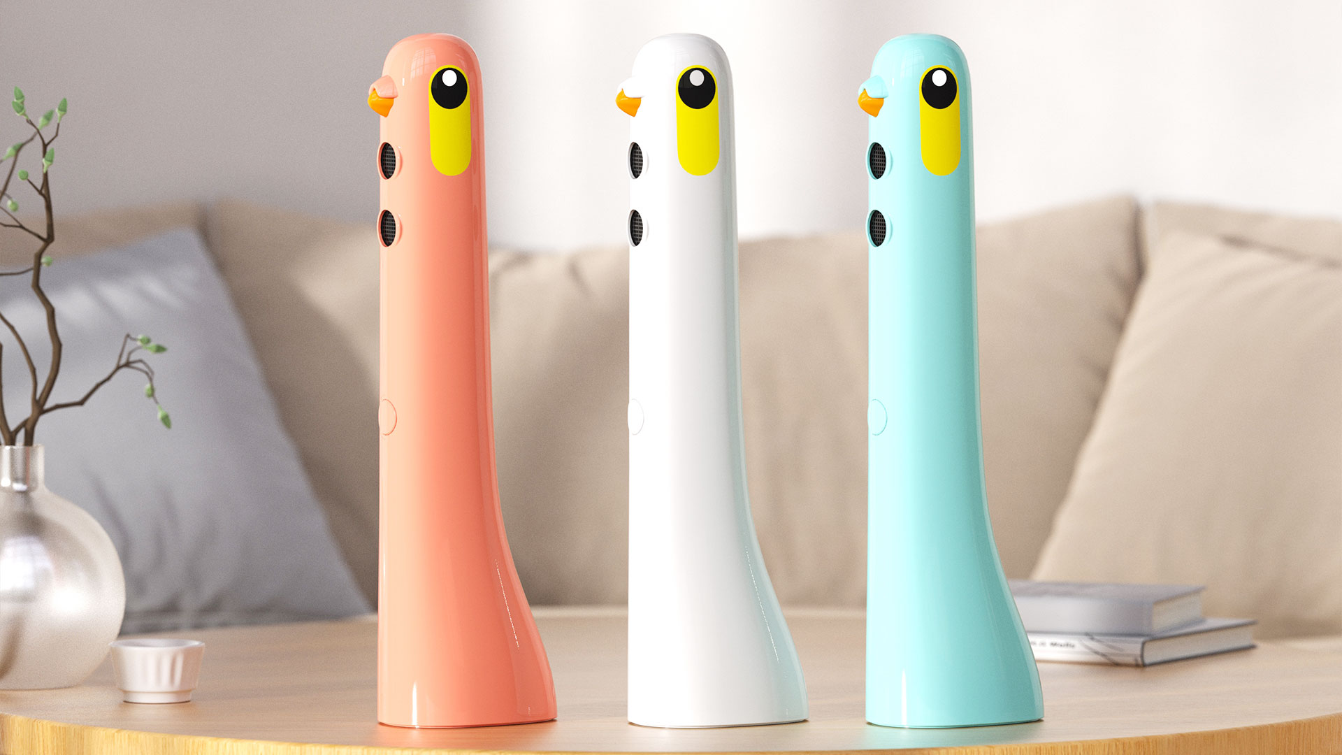寸法は約8×5×26.5mmで、重量は約132g。電源は単三電池2本。カラーは水色・白・オレンジの3色。