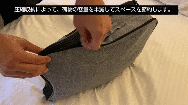 ①スーツケース・旅行バッグのスペースを半減して、小さいスーツケース・旅行バッグに変更することができます!②逆にスーツケース・旅行バッグのスペースを半減できるので、約2倍多くの荷物を持って行くことができます!③ジッパーの圧縮なので誰でも手軽に荷物を収納できます!
