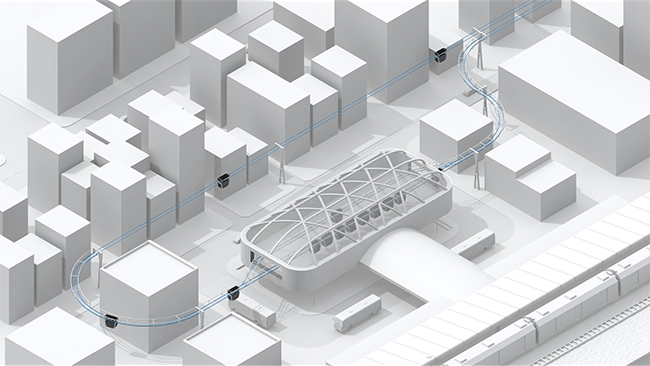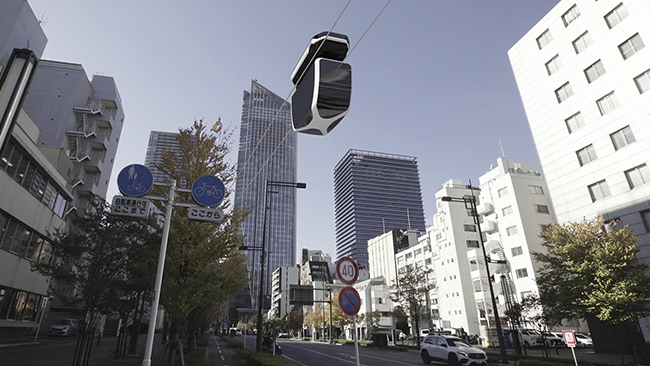 道路を拡張せず、軽量搬器と軽量支柱を組み合わせて建設するため、既存のモノレールより低コストで実現できるという。