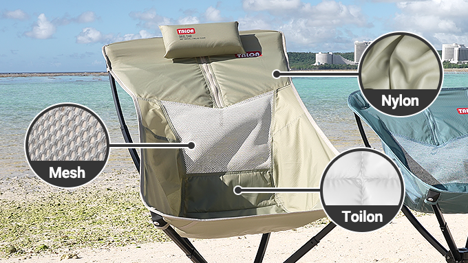 素材には耐久性と撥水性のあるナイロンを使用。背もたれ部分には通気性のあるメッシュを使用し、腰部分にはクッション性のあるトワロンを使用している。シートは体にフィットするように、人間工学に基づいて設計したという。